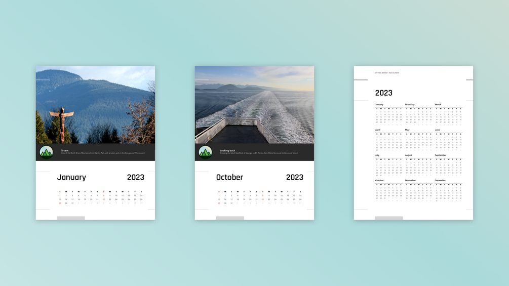 Scenic 2023 Calendar featuring photos from around Vancouver, British Columbia, Canada.